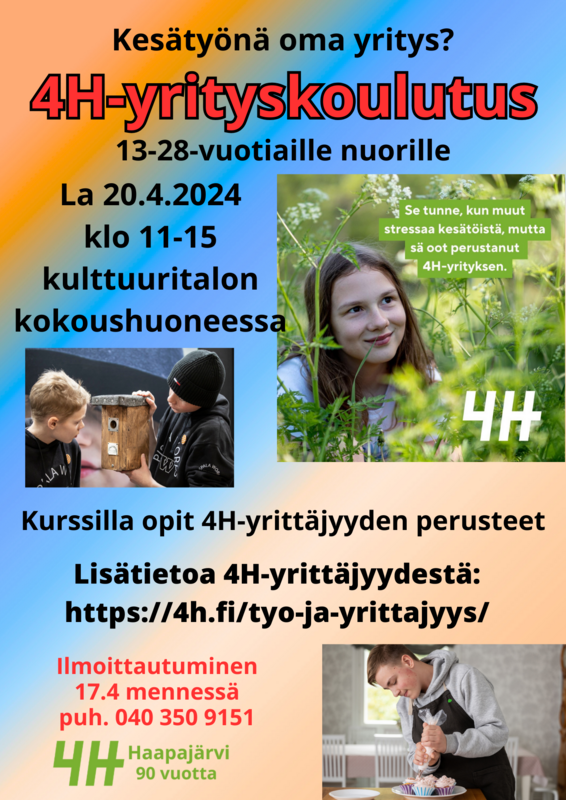 Haapajärvellä 4H-yrityskoulutus järjestetään 20.4.