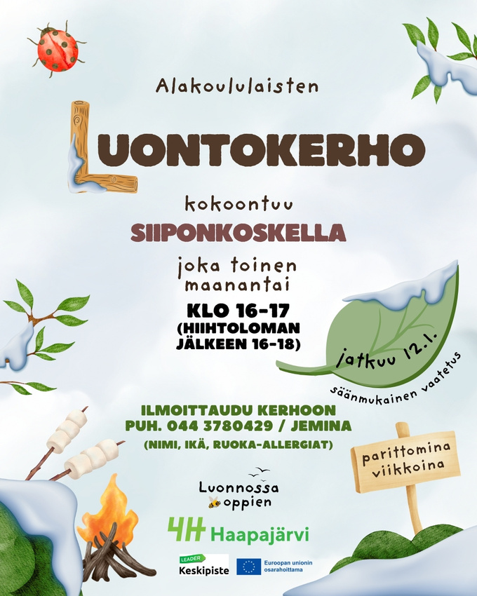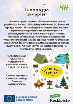 Haapajärven ja Pyhäjärven 4H-yhdistysten alueella on alkanut lokakuun alussa kaksivuotinen Luonnossa oppien hanke.