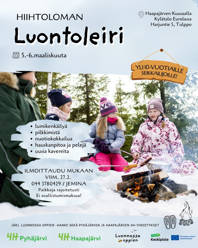 Leirille voi osallistua yli 10-vuotiaita Haapajärveltä ja Pyhäjärveltä. Paikkoja rajoitetusti!