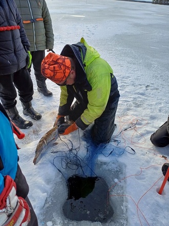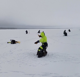 Pilkkivarusteita saa tarvittaessa lainaan jos niitä ei itsellä ole. Myös lumikengät saa lainaan leirin ajaksi.